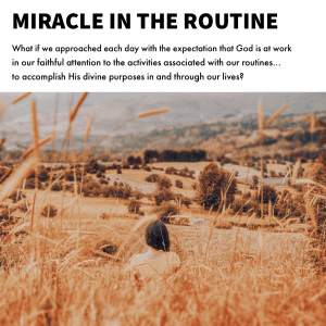 What if you and I were to approach every day with the kind of expectation that God is at work in our faithful attention to the activities associated with our routines… to accomplish His divine purposes in and through our lives?